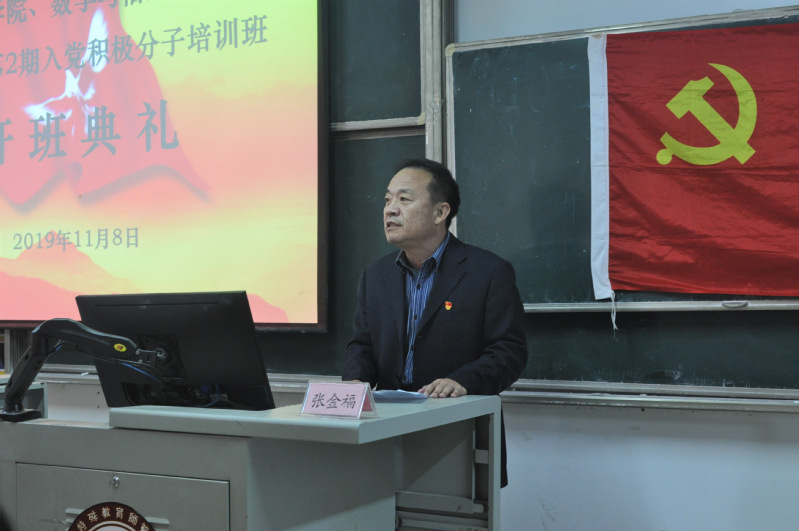 开班典礼在雄壮的国歌声中拉开帷幕,张金福部长首先致辞。张部长对参加本次培训班的同学们表示了热烈欢迎,接着强调了学习党课的重要性,明确提出了三点学习要求,希望同学们能够严于律己,认真上课,争做优秀学员。