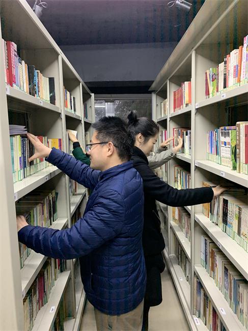 在图书馆百爱墙前,图书馆於晓庆老师对本次志愿活动进行了讲解说明,我院党总支书记叶亮对本次志愿活动进行了任务分工,然后集体前往图书馆负一楼图书密集库开始志愿活动。在相对狭小的空间里,党员师生热情很高,认真核对书目、整理书架,体验劳动的快乐。