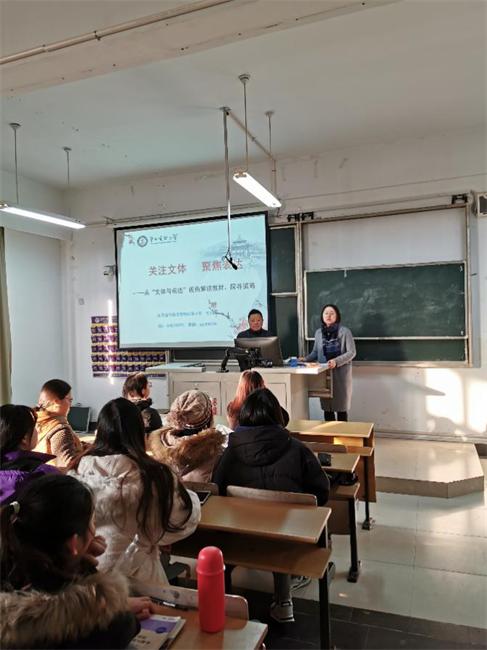 孟纪军老师结合自身实践经历,从教师及教学管理者的角度强调师范生基本功的重要性,注重三笔一画,启示同学们不断提高自身专业水平,希望同学们能做有专业、有尊严的语文老师。讲座围绕“关注文体 聚焦表达”这一主题展开,结合学生教师资格证面试的需求,从教材分析的方法、识字教学的重难点把握以及阅读教学的过程三个方面,具体阐述。孟老师语言风趣,既有理论的深度又有实践的广度,深受学生好评。通过这次讲座,学生将所学理论与实践很好地结合起来,理论知识得到深化,进一步了解一线教师教学的现状,从而能够更加自觉地提升自身的专业素养,不断学习,不断提升,为投身教育事业做好准备。
