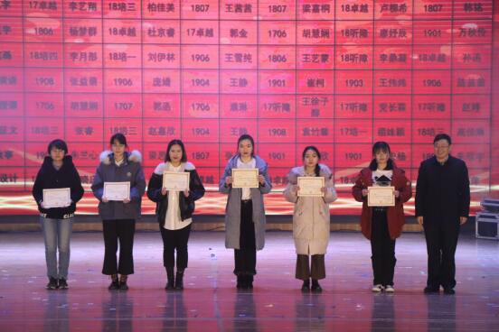 风采展示活动之后,陈克军副校长、纪委崔燕书记、组织部张金福部长上台为获得我院教学基本功系列比赛一、二、三等奖的同学颁奖并合影留念。