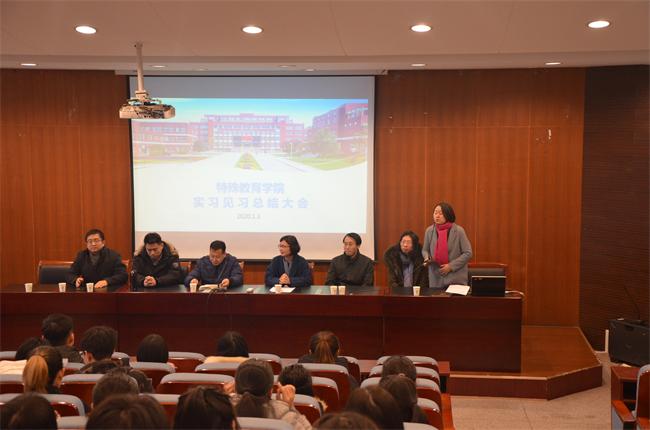 202013日上午,特殊教育学院2017级学生见习、2016级学生实习总结大会在博韵楼114报告厅举行。特殊教育学院谈秀菁院长、党总支叶亮书记、教务处李贵希副处长、特殊教育学院牟玉杰副院长、手语翻译系韩梅主任、实习指导教师代表王培峰、张伟锋、史玉凤等参加了此次活动。会议由牟玉杰副院长主持。