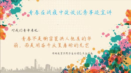 习近平总书记在纪念五四运动100周年大会讲话里指出:“民族复兴的使命要靠奋斗来实现,人生理想的风帆要靠奋斗来扬起。”所以,“奔涌吧,后浪!”,在这场全国抗疫大考中,我院学子们让奋斗成为青春最亮丽的底色,积极进取、奋发有为,努力不辜负这个伟大的时代。没有一个春天不会到来,没有一个冬天不可逾越,疫情终将过去,特殊教育学院的学子们学无止境,共克时艰,一起期待在南特校园的重逢和再次相遇。