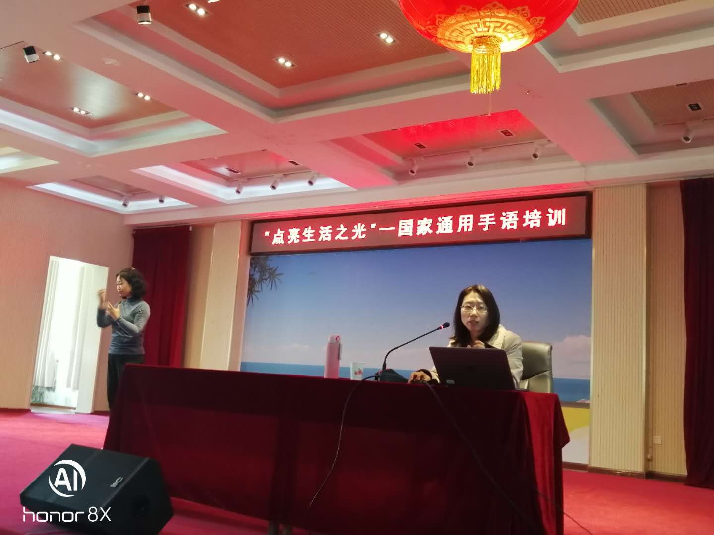 推广国家通用手语,是我国语言文字工作的一项基本政策和重要组成部分。《国家中长期语言文字事业改革和发展规划纲要(2012-2020年)》《国家手语和盲文规范化行动计划(2015-2020年)》都提到了手语规范化的问题。为进一步推广国家通用手语,根据我校中国盲文手语研究与应用中心的安排,2020年9月12日—19日期间,我院手语翻译系赵晓驰教授、史玉凤副教授、韩梅副教授先后赴青海省西宁市,针对社会各窗口单位的工作人员、特殊学校的老师及部分聋生开展了国家通用手语培训活动。赵晓驰教授面向青海省特殊教育学校听障部的老师们介绍了通用手语的常见语法特点;史玉凤副教授面向社会各窗口行业的工作人员进行了常用行业手语的培训;韩梅副教授面向高年级聋生介绍了手语规范化的必要性及国家通用手语的特点。此次培训对象涉及到聋校教师、聋人学生和窗口行业人员,培训的内容包括通用手语常用词和常见语法特点,受众广泛,内容全面,效果良好。