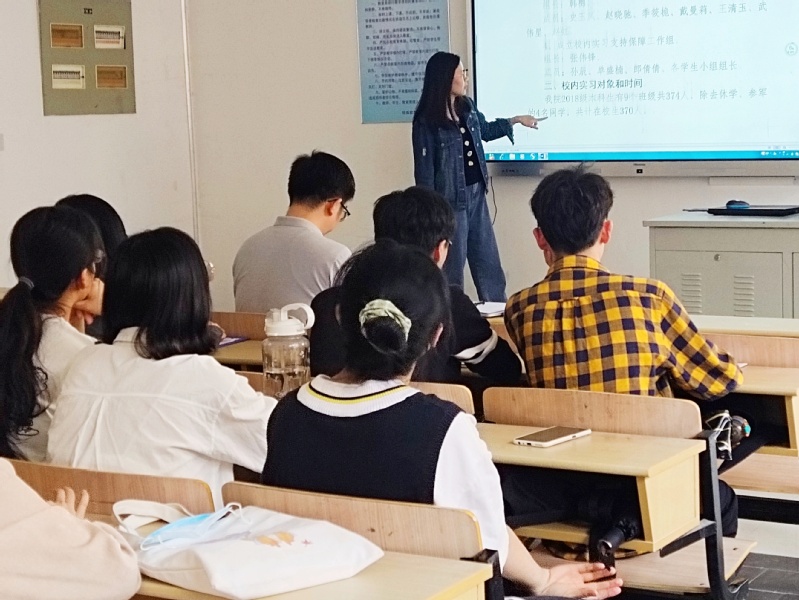 会议开始,由单盛楠老师解读学院2018级本科生校内实习工作方案。单老师详细介绍了本次校内实习的组织机构,实习对象、时间、教育实习和手翻实习内容、各阶段具体安排、材料上交的具体事宜等。本次校内实习经过反复研讨和沟通,制定了较周密的工作方案,落实了师生分组安排。并且针对不同专业,明确了校内实习内容和过程管理要求,确保校内实习工作能高效开展。