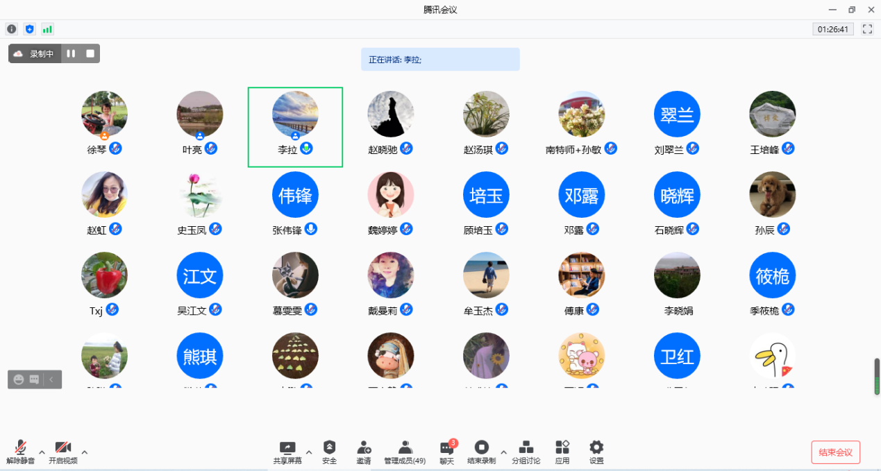 最后,主持工作李拉副院长讲话。李院长对暑假期间各位老师的辛苦工作表示感谢,并对开学初的相关教学工作进行强调,要求认真学习教务处关于在线教学的文件通知,充分领会在线教学的新要求,做好技术和备课准备,规范教学流程,进一步提高教学水平。对本科教学合格评估工作,李院长强调要按照学校的要求继续整改和推进。