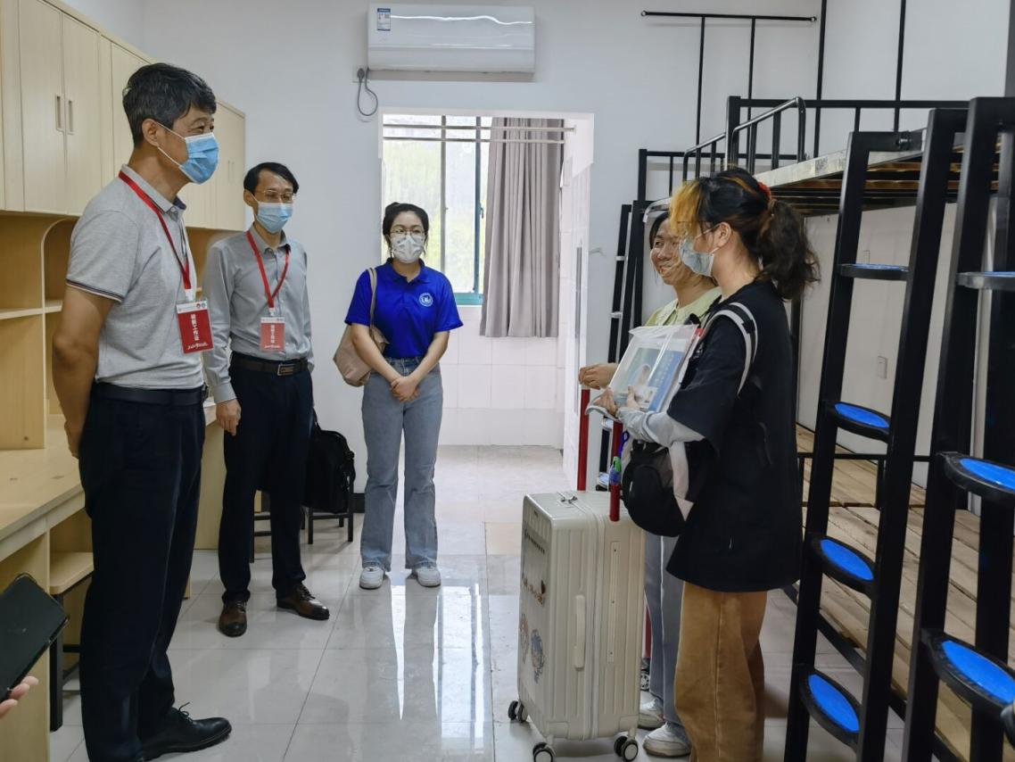 迎新工作期间,学院党总支叶亮书记、李拉院长、李鹏副书记也莅临迎新现场。学院党政领导和新生辅导员元志立老师、王赫煊老师一起到宿舍看望新生们,关心其学习和生活。
