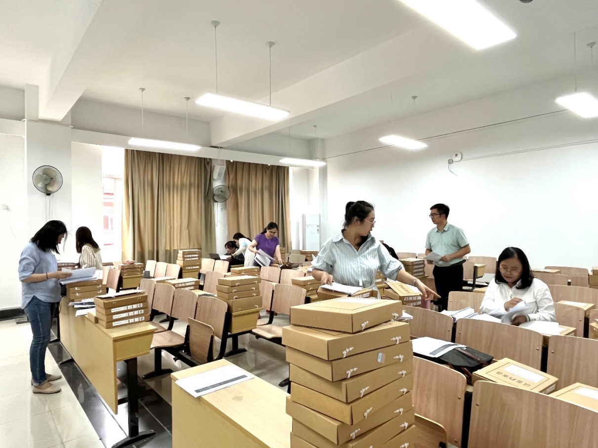 老师们会后针对预评估中专家反应的问题,对试卷和论文进行现场集中整改。