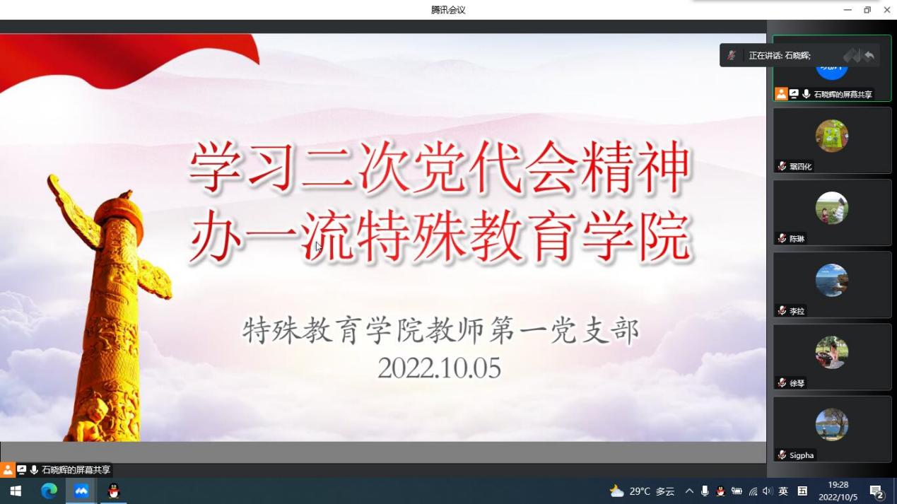 10月5日,特殊教育学院教师第一党支部开展了“学习二次党代会精神 办一流特殊教育学院”的主题党日活动。