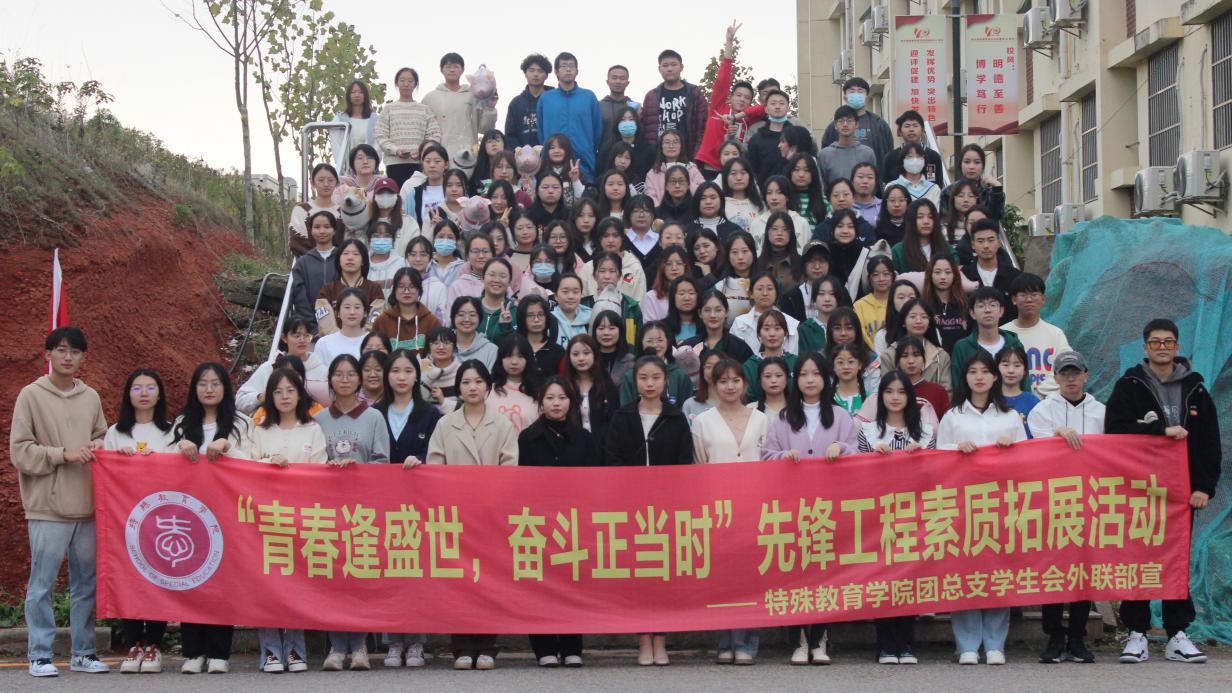 青年是整个社会力量中最积极最有生气的力量。趁着新时代的东风,11月20日下午,特殊教育学院团总支学生会外联部举办了以“青春逢盛世,奋斗正当时”为主题的先锋工程素质拓展活动,我院团总支学生会全体成员参加。