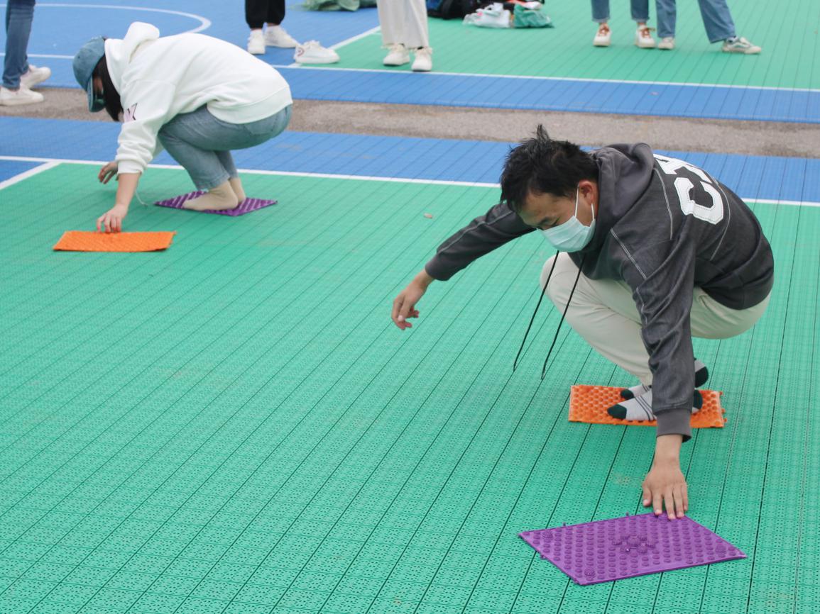 第二项运动是“摸石过河”。在裁判发令后,选手们需要将两块指压板放在地上,另外一块用于替换脚下的指压板,脚踩指压板跑向对面进行接力。同学们为了班级的荣誉进行激烈的角逐,他们在操场的表现给本次运动会增添了许多乐趣。赛场上尖叫声和笑声持续不断,十分欢乐。既有运动的刺激,也有游戏般的快乐。