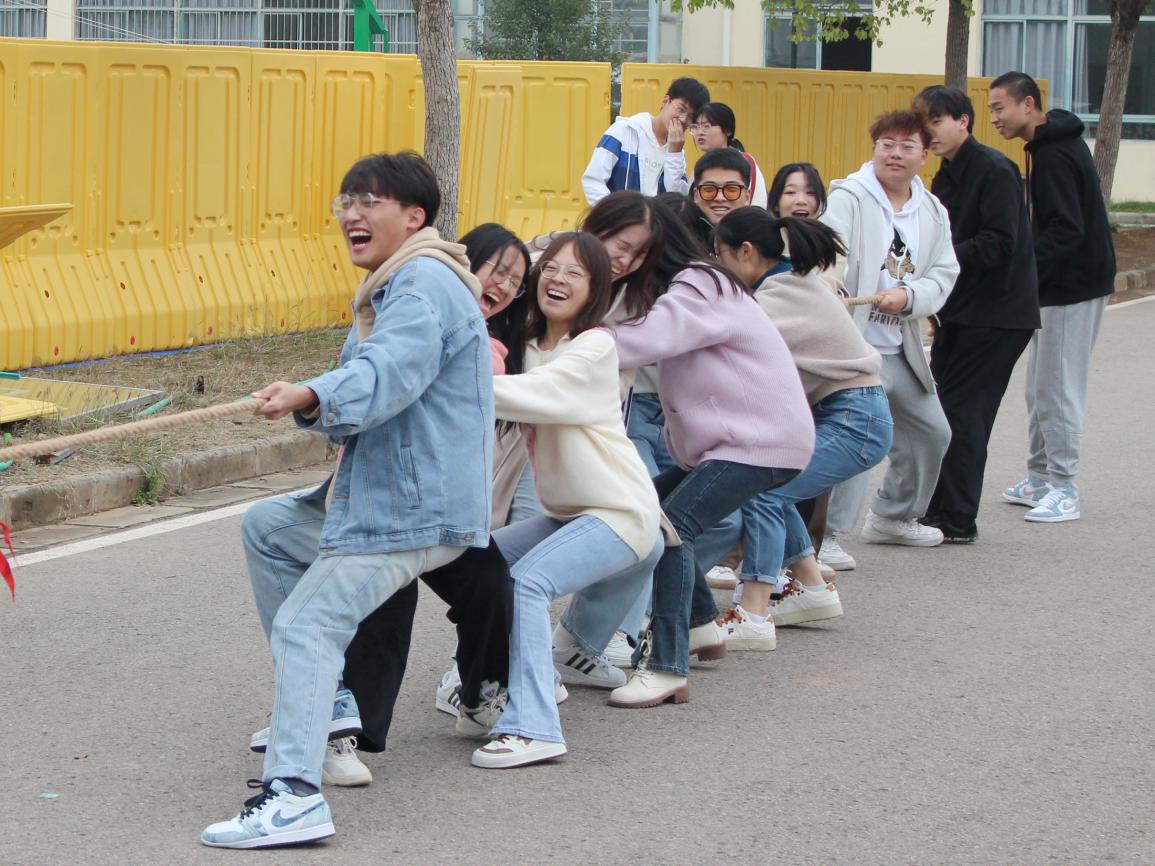 最后是拔河比赛,由各班派出8人队员参加比赛。第一场是小教2201和小教2202的比赛。裁判喊下比赛开始的口令后,两方队员同时发力,但两方力量差距悬殊,小教2202班以极快的速度赢得了比赛。第二场特教2201对战特教2205,两方互不相让,绳子上的中位标记不断在两边移动。最终特教2205班获胜。接着是小教2202和特教2204的对比,比赛开始后,两方僵持不下,两方队员都十分卖力,队员们的喊声和观众们的呐喊声交杂,十分热闹。最终特教2204班获胜。最后是决赛,由特教2205班对决特教2204班,双方实力都十分强劲,每个队员都股足了劲,涨红了脸,抓紧绳子,全力以赴。双方展开了一场势均力敌的拉锯战,好不精彩。特教2205班愈战愈勇,特教2204班体力不支。最终特教2205班赢得了江宁校区的比赛。