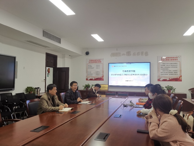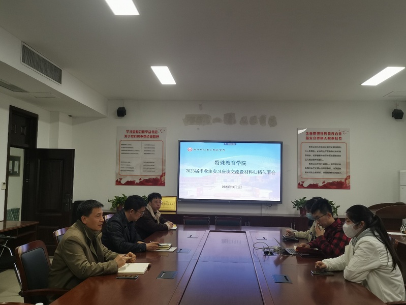 因受疫情影响2022年底学生提前放假离校,2023届毕业生实习收尾工作顺延至本学期期初。为全面推动学院实习工作改革创新,总结本轮实习工作经验以及部署完成好实习收尾工作,特殊教育学院于3月1日下午在博雅楼2401会议室召开2019级实习座谈交流暨材料归档部署会。会议由副院长张伟锋主持,院长李拉、兼任教务老师刘凯毅、2019级实习生代表和学生骨干出席。