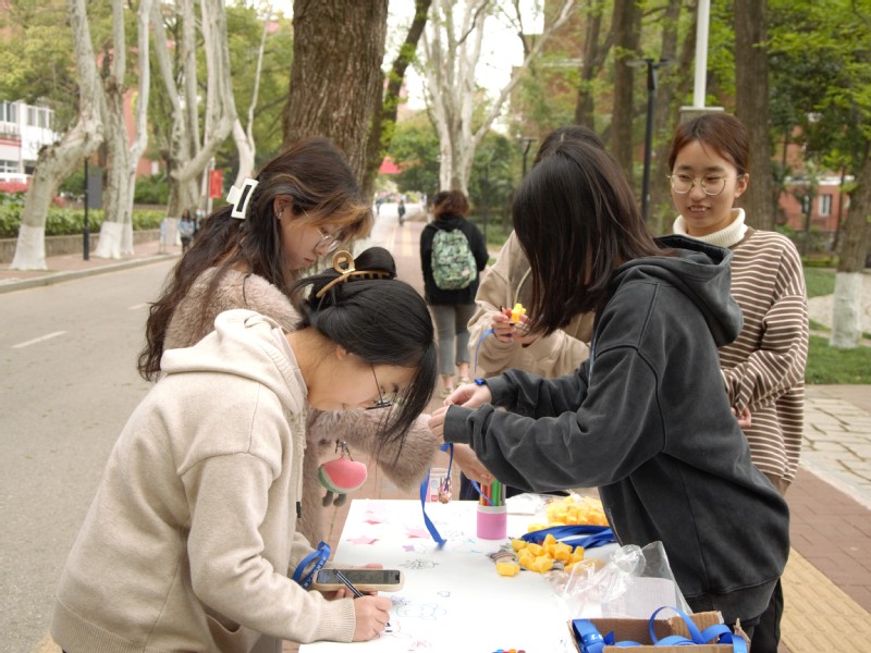 “让我们在春天走进孤独症,了解这些来自星星的孩子。”午后时光,在绿意盎然的校园林荫道上,同学们人头攒动,纷纷前来一起写下对孤独症儿童美好的祝愿!“祝你永远赤诚,心若向阳,无惧风雨。“