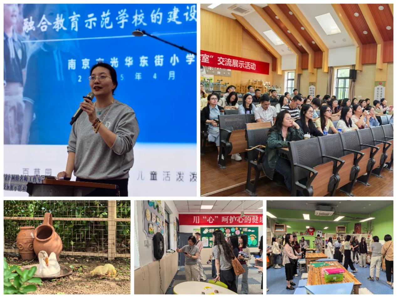 其二,参访南京光华东街小学。吴宁校长以“融合教育示范学校的建设与运行”为题给学员们作了专题报告。她详细介绍了学校在融合教育理念下的校园文化建设、课程体系构建、师资队伍建设以及家校合作等方面的经验和做法。参训学员近距离考察了学校推进实施融合教育的情况,并与该校教师进行深入交流,共同探讨融合教育在实际操作中遇到的挑战与解决方案。这次实地参访不仅让学员们看到了融合教育的成功案例,也激发了自己致力践行融合教育的思考。