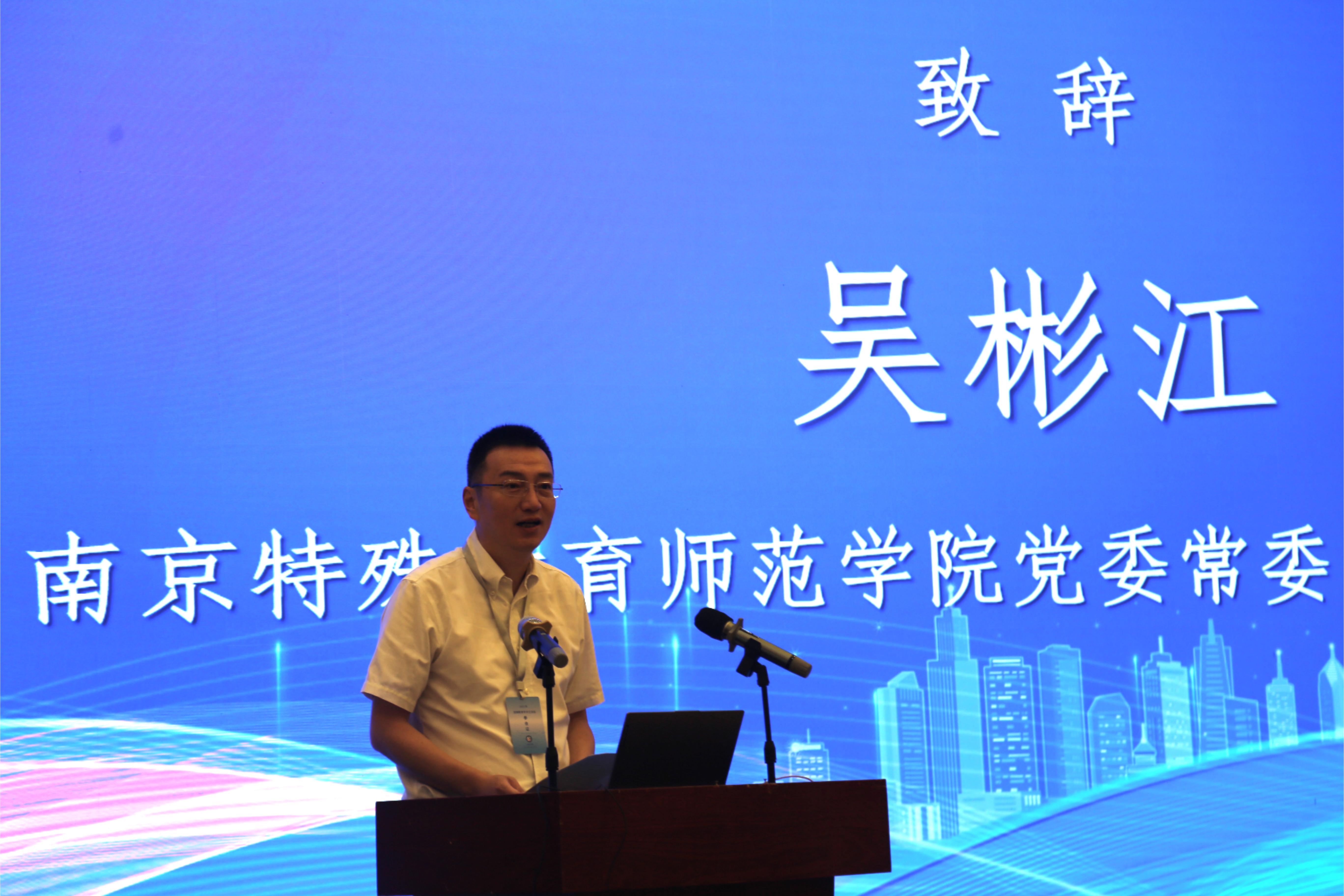 南京特殊教育师范学院党委常委、副校长吴彬江在开幕式上致辞。吴彬江副校长在致辞中表示,当前正值《教育强国建设规划纲要(2024-2035年)》的深入推进以及《“十四五”特殊教育发展提升行动计划》收官之年,视障教育作为特殊教育体系中不可或缺的一部分,承载着为视力障碍学生提供适宜教育环境的责任,是实现教育公平、促进社会和谐发展的重要一环。视障教育师资是特殊教育学院传统的人才培养方向,曾经培养出一大批优秀的视障教育教师,为我国的视障教育做出了巨大贡献。希望此次视障职业教育学术交流会能够促进视障教育领域的学术交流与合作,推动视障职业教育理论研究与实践探索,助力提高视障者的教育质量和就业水平。