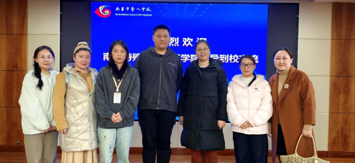 陈琳副院长带队赴南京市聋人学校看望手语翻译专业实习生并开展专项调研。座谈会上,陈院长阐述了调研目的,旨在了解实习生表现并听取人才培养建议。南京聋人学校杨武举主任详细介绍了实习安排,实习生已完成全学段、全学科的听课见习。指导老师高度评价了实习生认真积极的态度和稳步提升的教学能力,同时建议学院加强实习前的实践衔接与专项技能指导。实习生代表表示,希望在校期间能获得更多提前接触真实课堂的机会。会后,调研组参观了校园与手语博物馆,深入体验手语文化的独特魅力,增强了对特殊教育内涵的理解。本次调研为学院优化实践教学、深化产教融合提供了宝贵的一线参考。