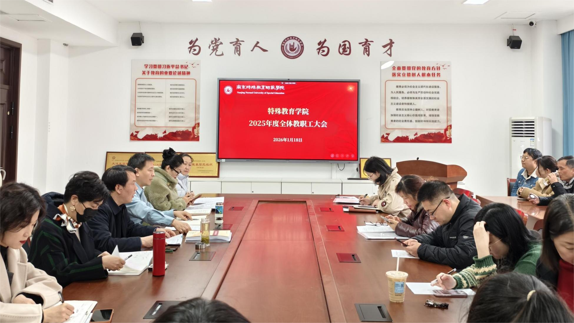 1月18日上午,特殊教育学院召开2025年度全体教职工大会,学院领导班子及全院教职工参加会议,会议由学院党委书记章小军主持。
