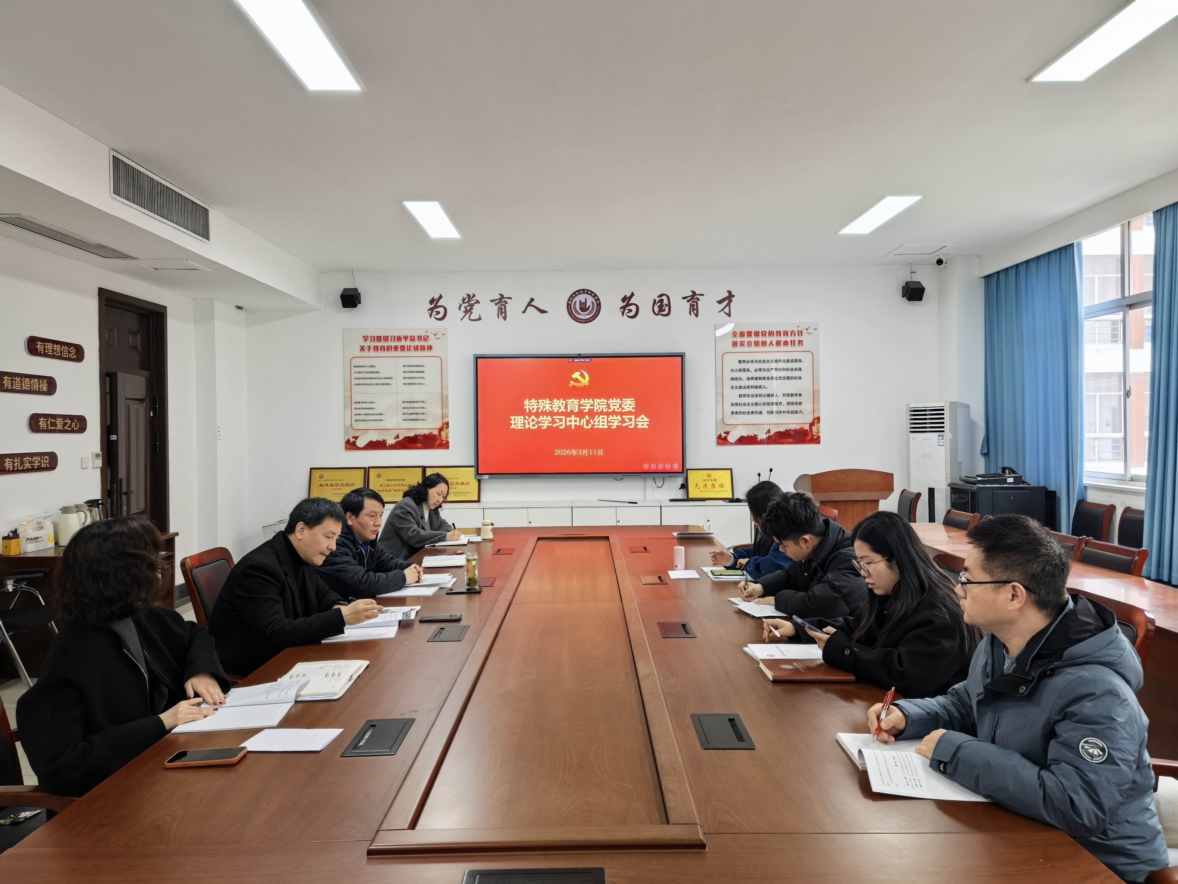 3月11日上午,特殊教育学院党委召开理论学习中心组(扩大)学习会,传达学习习近平总书记参加十四届全国人大四次会议江苏代表团审议时的重要讲话和近期发表的重要文章精神。学院全体党委委员、各党支部书记、团委书记参加学习。会议由章小军同志主持。