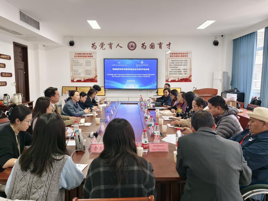 3月26日下午,印度尼西亚雅库姆基金会(YAKKUM)来访特殊教育学院,双方在博雅楼2401会议室举行交流洽谈会。特殊教育学院副院长陈琳、特殊教育系主任李晓娟及学院骨干教师代表,国际交流学院教科研助理蒋雷雷、对外合作与交流处教科研助理朱牧阳、爱德基金会项目专员安盼等,与雅库姆基金会社区健康发展与人道主义事务总监阿辛塔、康复中心总监查塔里娜·萨里等核心成员参会。双方围绕特殊教育人才培养、融合教育实践、社区康复服务等议题展开深入交流。会议由陈琳副院长主持。