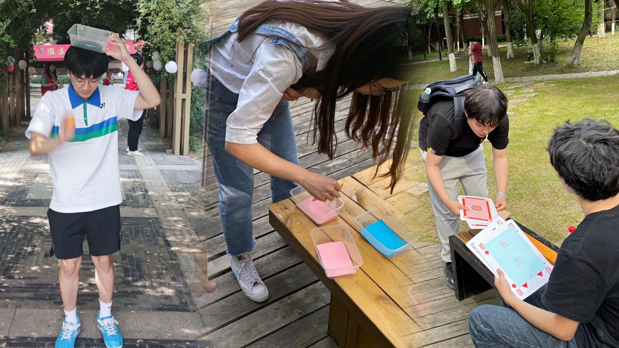 最后进行的是“疫”路平安。大家移步残疾人文化园,在园中寻找遗落的时间与事件,进行一一对应。同时,也设立了4个任务点,分别是疫苗研发,医患纠纷,顶桶接球以及疫情知识问答。通过完成任务,不仅能获得线索,更独特的方式增强同学们对疫情的认识。小小的折纸被藏在了树上、草丛中,或者某个拐角处,同学们三两为伴仔细的寻找折纸,找到后又与队员们进行分享,以及参与任务来获得小礼品。阳光下,同学们的笑脸显得格外耀眼。