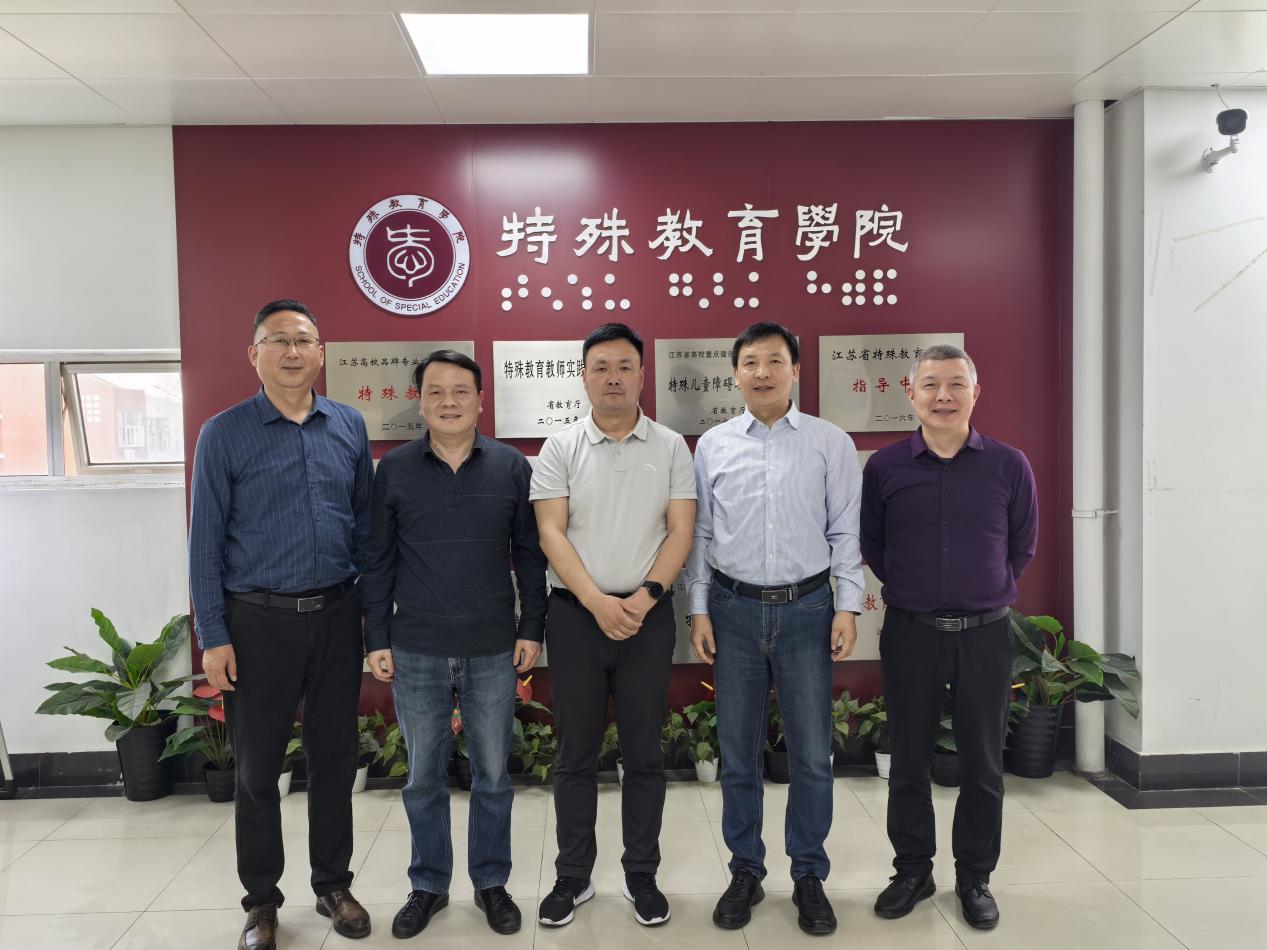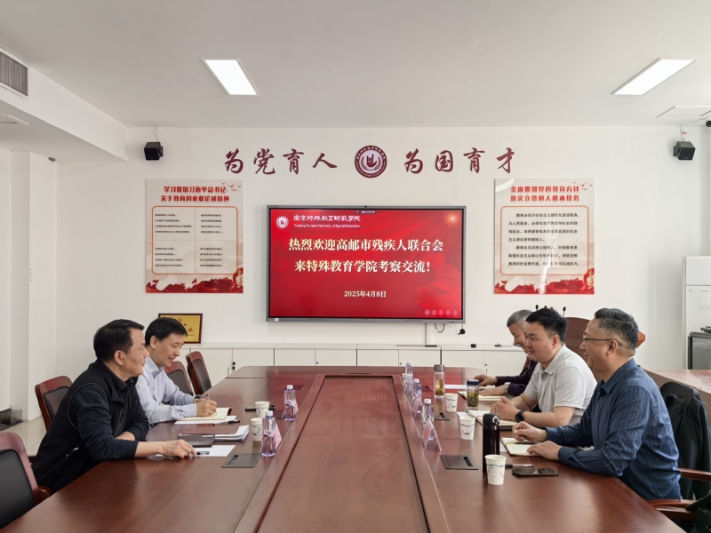 4月8日,为推动高邮市残疾人康复事业高质量发展,探索具有区域特色的康教融合模式,进一步提升儿童康复工作的质量和成效,特殊教育学院与高邮市残疾人联合会在博雅楼2401会议室再度举行合作交流会。高邮市残联理事长杨大忠,党组副书记、副理事长潘宏斌,康复中心主任时连忠,以及特殊教育学院党委书记章小军、院长李拉共同参加座谈。