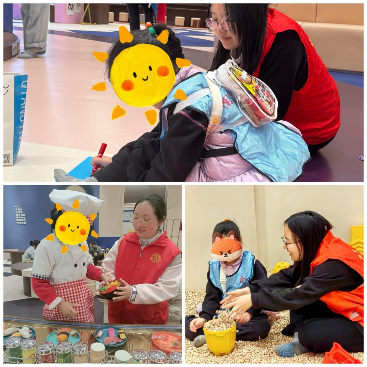 当日上午,特殊教育学院青年志愿者协会与南京市建邺区南方贝贝儿童发展中心携手,带领三十位孤独症儿童前往弘阳广场,参与孤独症日专项活动。活动现场,志愿者们与孩子们默契相伴,共同沉浸在艺术创作的世界中。他们拿起画笔,在画纸上自由挥洒,每一笔都充满了对美好世界的向往。折纸飞机的环节更是让孩子们兴奋不已,当纸飞机在空中划出一道道优美的弧线时,孩子们纯真的笑容如同春日暖阳,温暖人心。此外,孩子们还乘坐了小火车,游览了广场,参与了舞蹈表演,在海洋球池中尽情嬉戏,享受了属于他们的欢乐时光。志愿者们的耐心陪伴与关爱,让孤独症儿童感受到了社会的温暖与包容。