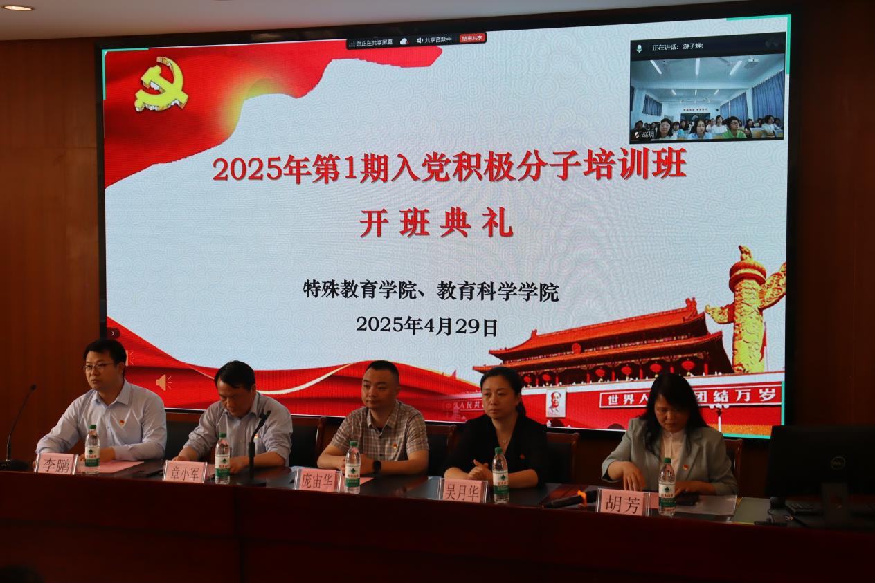 4月29日,特殊教育学院与教育科学学院在栖霞校区博韵楼114会议室、江宁校区A210教室同步举行2025年第一期入党积极分子培训班开班仪式。校党委组织部副部长庞宙华、特殊教育学院党委书记章小军、教育科学学院党总支书记吴月华、副书记胡芳出席,开班仪式由特殊教育学院党委副书记李鹏主持。