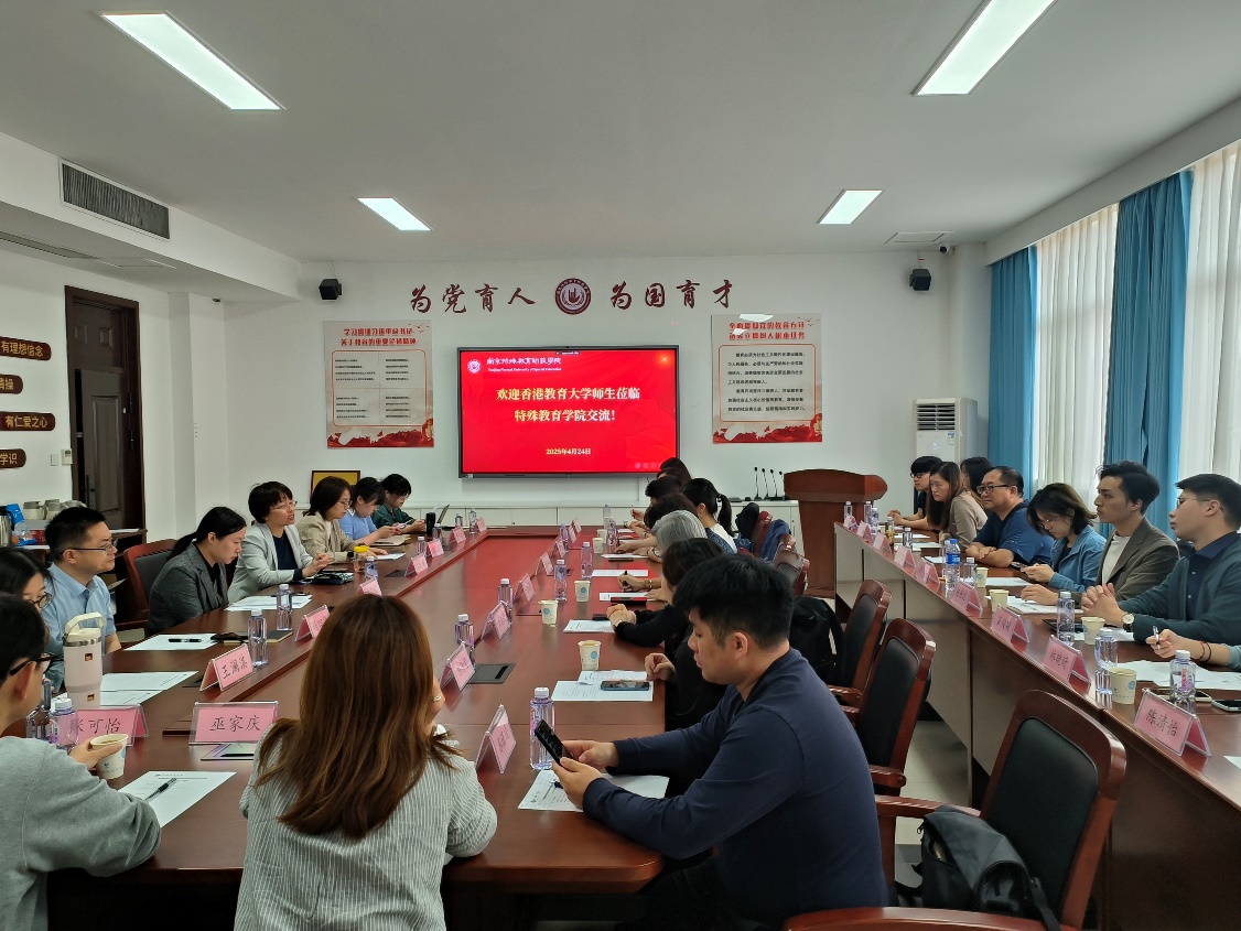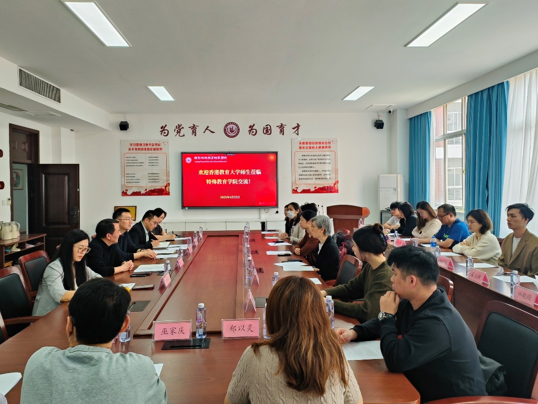 近日,香港教育大学特殊教育与辅导学系师生代表团一行21人莅临特殊教育学院,展开为期三天内容充实且行程紧凑的学术交流活动。此次香港教育大学交流团队由13名教师及8名博士生组成,这也是近年来我院迎来的最大规模的一次境外高校来访交流活动。学院精心组织了一系列研讨交流、学术讲座及实践走访活动。