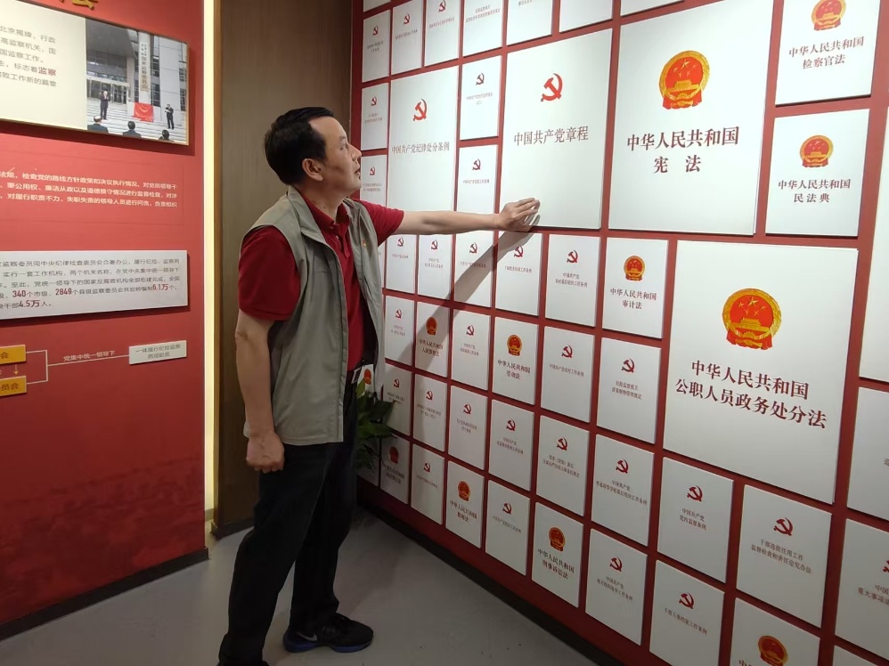 活动伊始,大家整齐列队走入自省之廊,长廊以“警钟长鸣”为设计意象,整体造型呈钟形,寓意警示常在、警觉常存。走廊尽头,一口巨大的警钟静立中央,钟声响起,回荡整个展厅,也响彻每一位党员的内心。在“历史镜鉴”展区,大家通过丰富的史料和多媒体展示,了解了中国古代监察制度的发展历程,深刻感受到古人在廉政建设方面的智慧和经验。在“法治镜鉴”展区,详细学习了监察法等相关法律法规,进一步增强了法治观念和纪律意识。