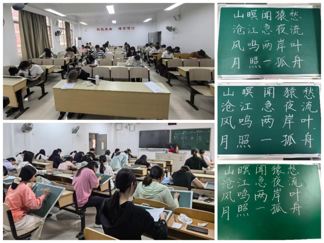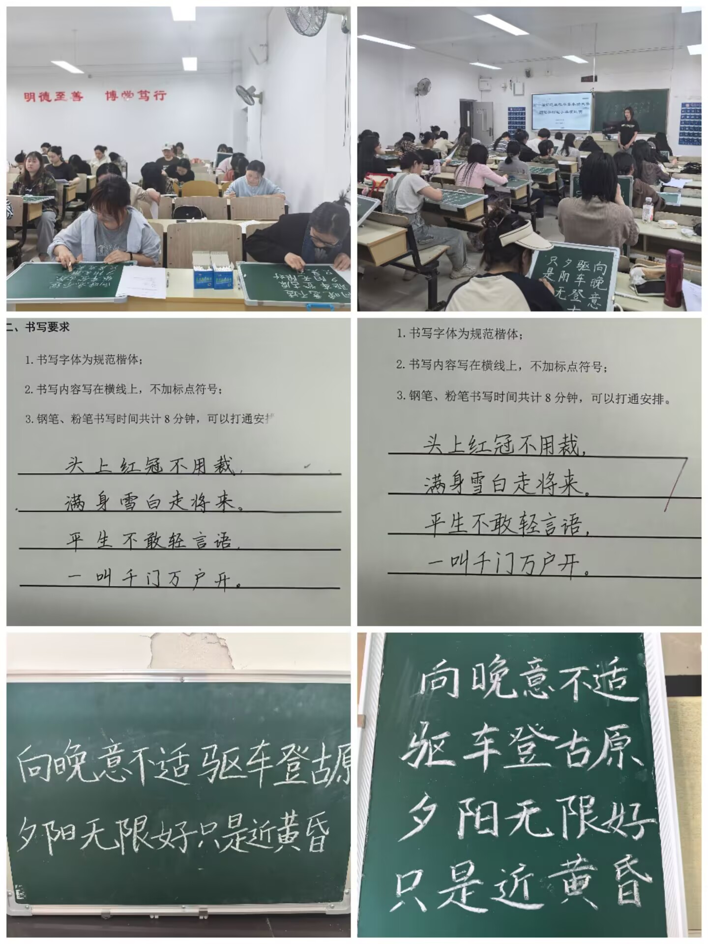 通用技能比赛更是将选手们的专业素养与教学能力推向了新的高度。在粉笔字和钢笔字书写环节中,选手们再次以精湛的书写技艺征服了评委与观众,有的作品字迹苍劲有力,结构严谨;有的作品板书布局巧妙,清晰流畅,充分展现了师范生的书写规范与审美能力。