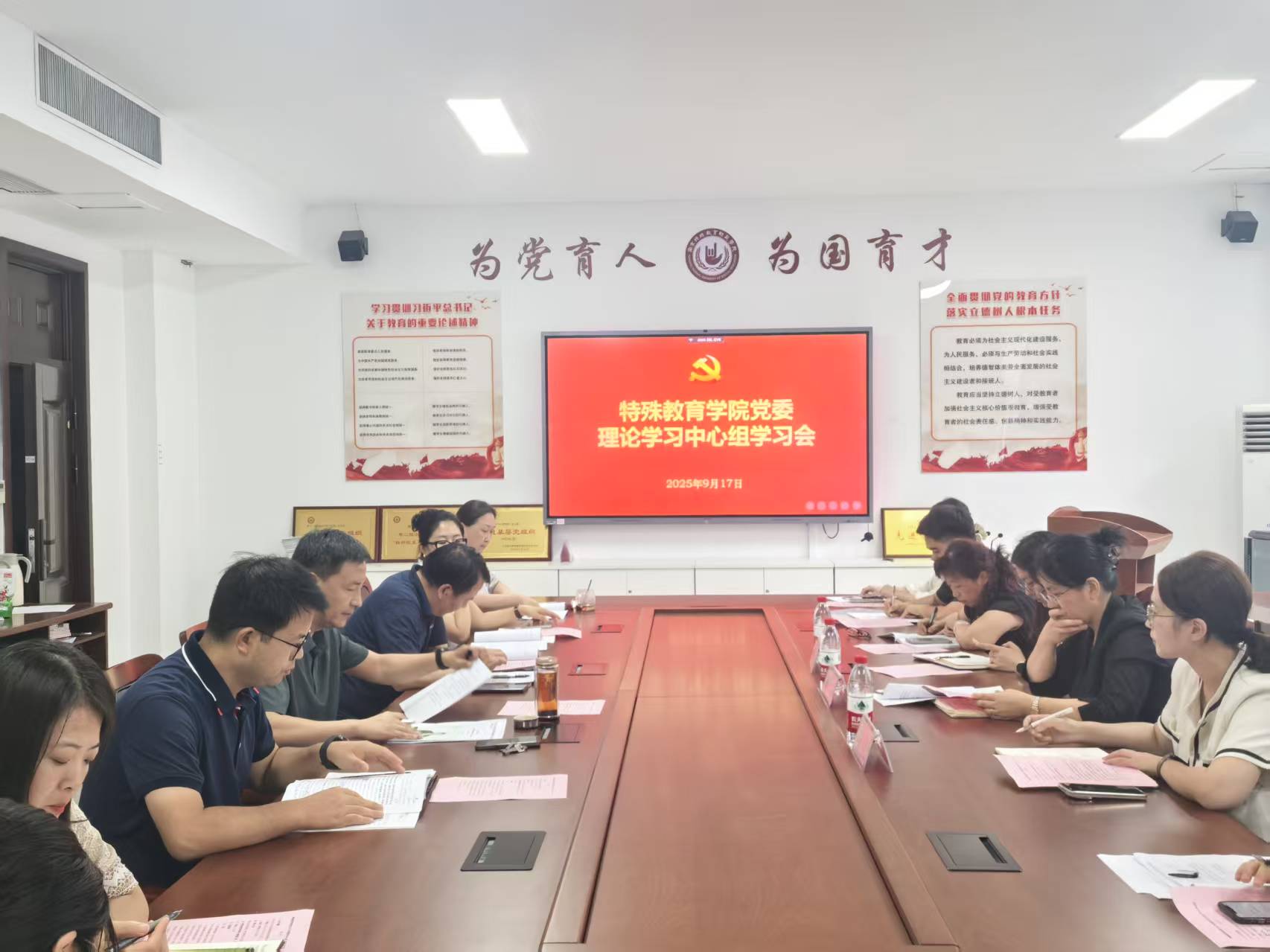 9月17日下午,特殊教育学院党委召开理论学习中心组(扩大)学习会,专题学习习近平总书记近期重要讲话重要指示精神。学院全体党委委员、各党支部书记、团总支书记参加学习,校党委巡学旁听指导第一组成员列席。会议由章小军同志主持。