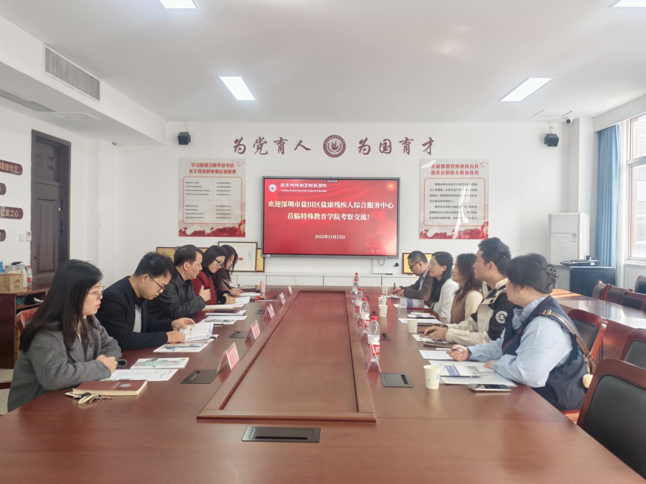 为深化校企协同联动,推动区域残疾人服务事业高质量发展,11月13日,深圳市盐田区盐康残疾人综合服务中心主任宋景一行5人来到特殊教育学院考察交流。特殊教育学院党委书记章小军、副书记李鹏、副院长何燕春、学工办主任元志立和毕业班辅导员王赫煊参加座谈。