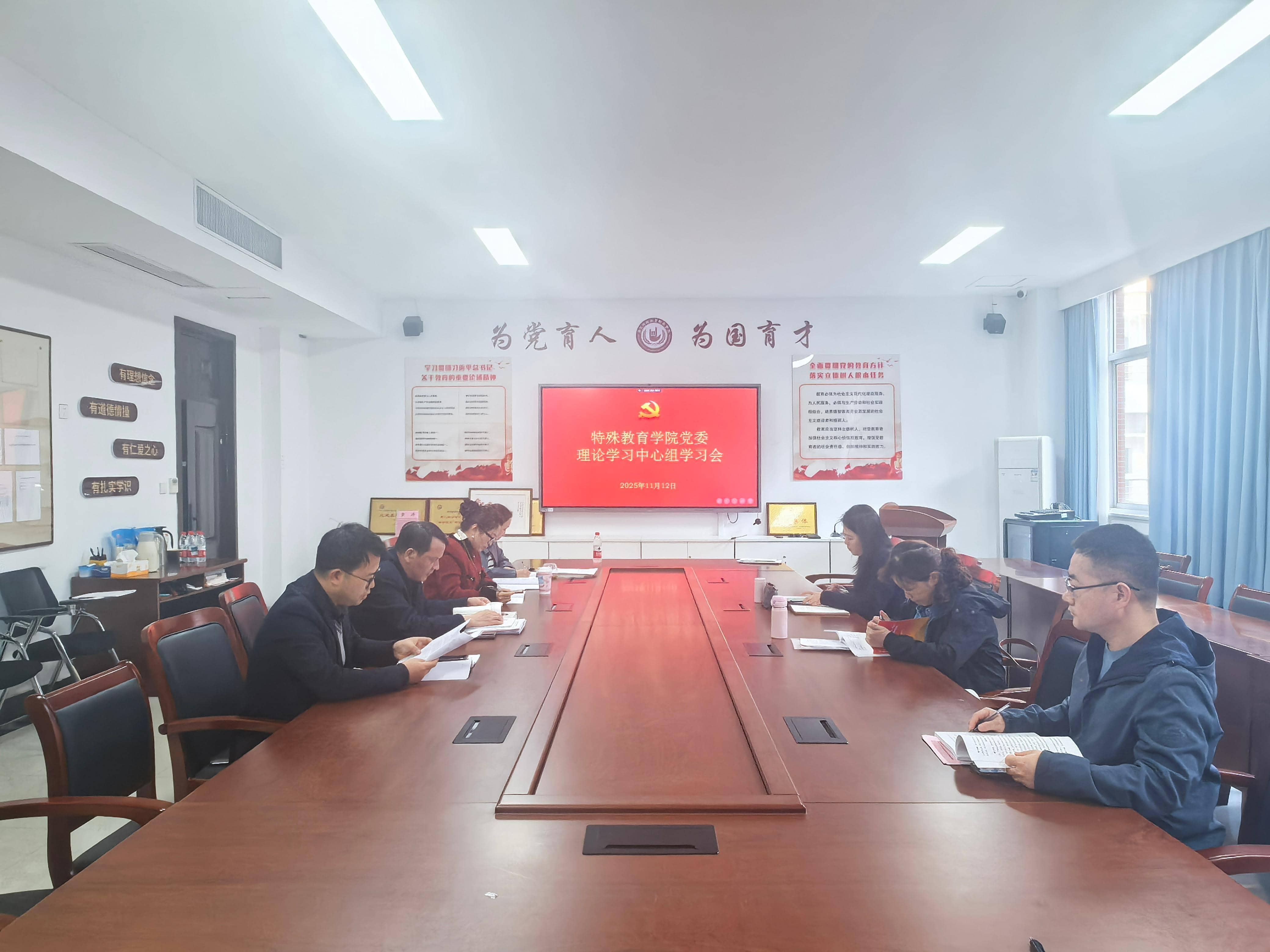 11月12日下午,特殊教育学院党委召开理论学习中心组(扩大)学习会,学习传达党的二十届四中全会精神,并通过“学习强国”平台聆听《习近平谈治国理政》第五卷专题辅导报告。学院全体党委委员、各党支部书记、团总支书记参加学习。会议由章小军同志主持。