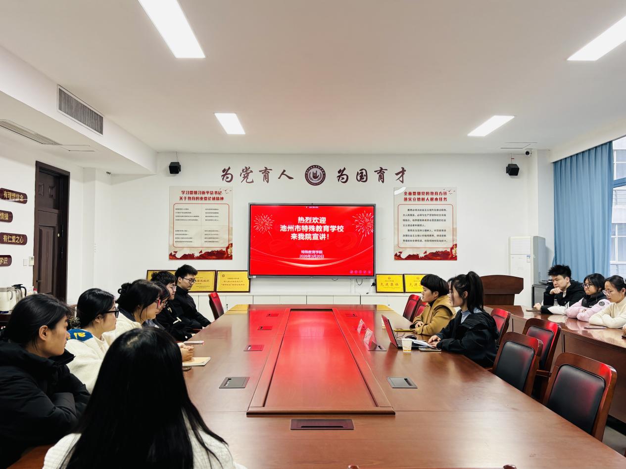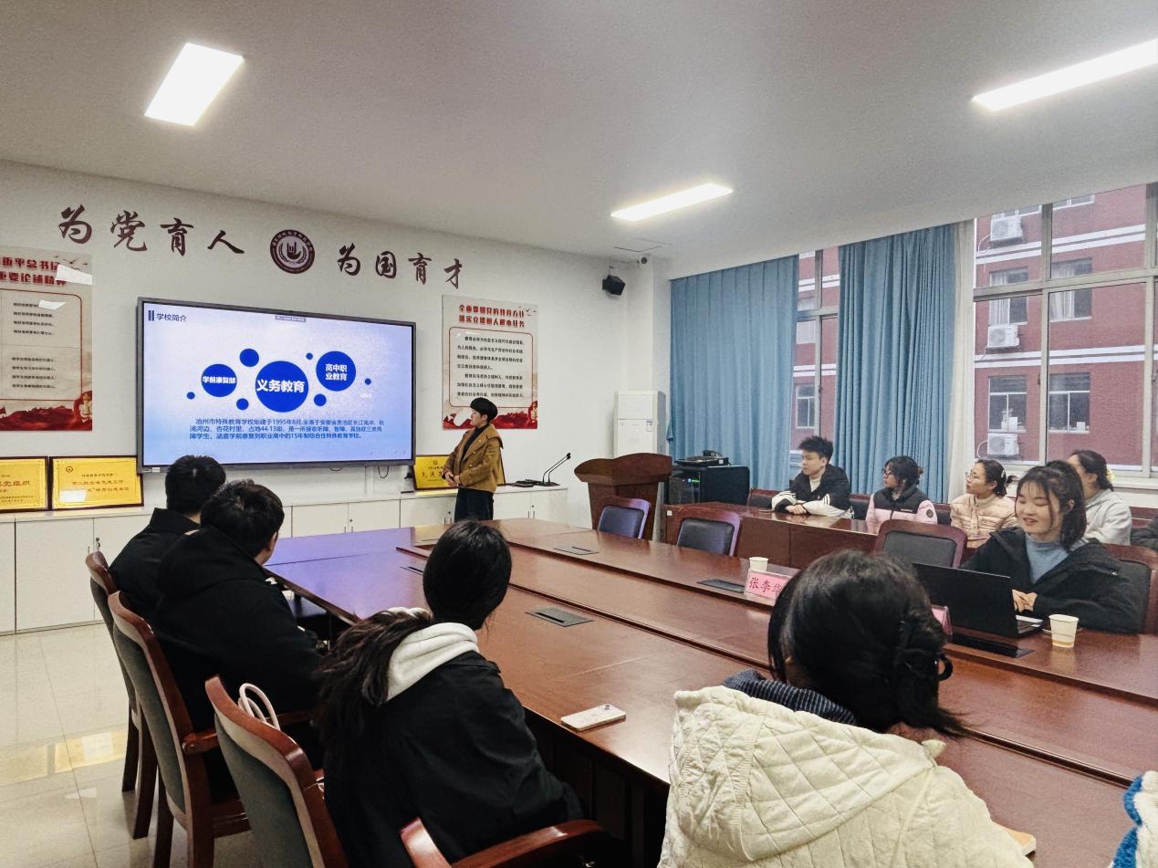 为精准对接用人单位招聘需求,助力毕业生高质量就业,3月20日,池州市特殊教育学校招聘宣讲会在博雅楼2401会议室举行。本次宣讲会由毕业班辅导员王赫煊主持,部分有意向报考的毕业班同学来到现场参加交流。