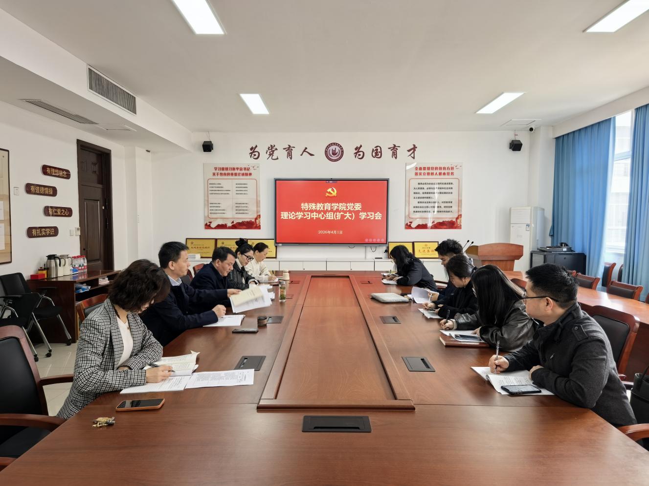 4月1日上午,特殊教育学院党委召开理论学习中心组(扩大)学习会,围绕“树立和践行正确政绩观学习教育”主题开展专题学习。学院全体党委委员、各党支部书记、团委书记参加学习。会议由章小军同志主持。